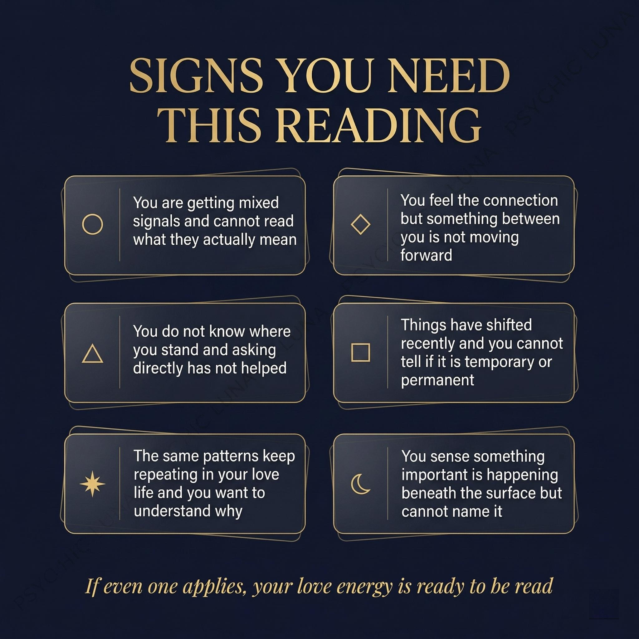 People come to this reading when they need clarity before they make a move they cannot take back. When the silence has gone on long enough and they need to know if they are reading the situation correctly. I give you the honest picture so you can decide from a place of knowing rather than guessing.