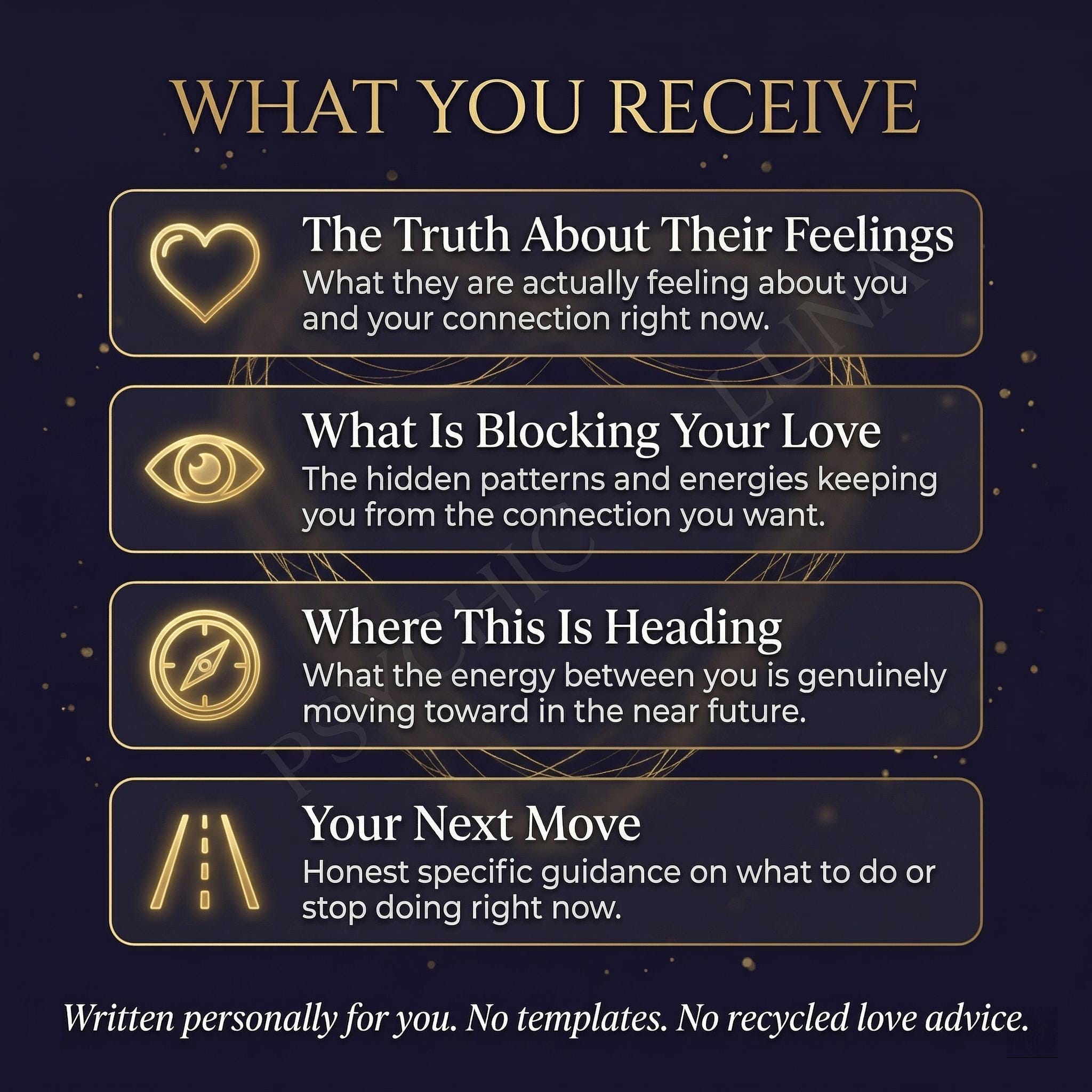 You already know something is off. You have replayed the conversations, analyzed the silence, and still cannot land on what is actually happening between you and this person. A love psychic reading cuts through that. I read what is real in your connection right now, not what looks real on the surface.